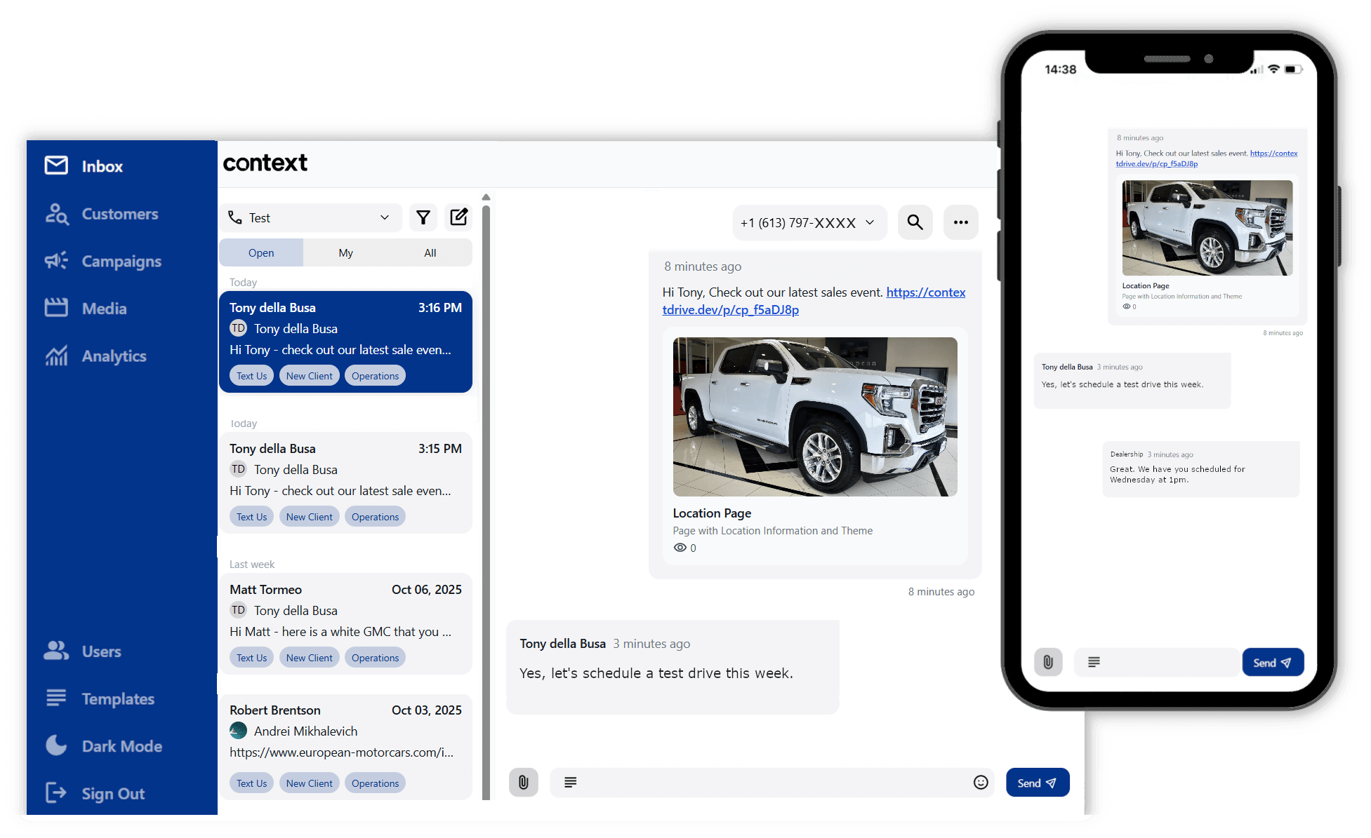 Engage and convert new prospects while staying connected with existing customers. With Context Smart Text™, every text message drives stronger relationships, repeat business, and measurable growth.